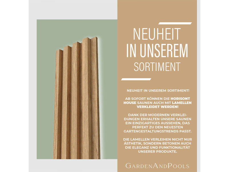 - New! Option to finish the Horisont House sauna with slats! More in the product images
