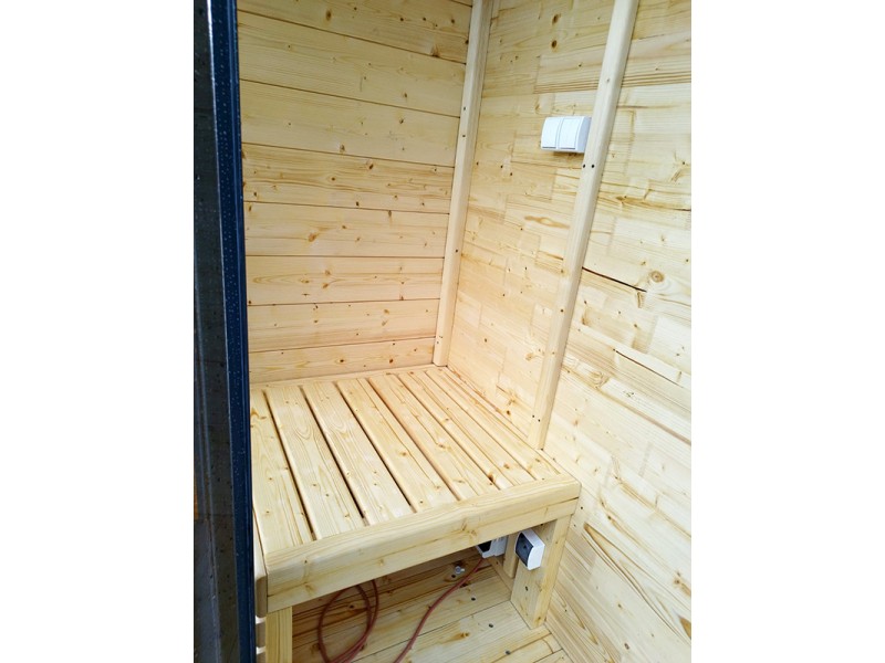 - Saunainnenraum aus Erlenholz Wände und Saunabänke