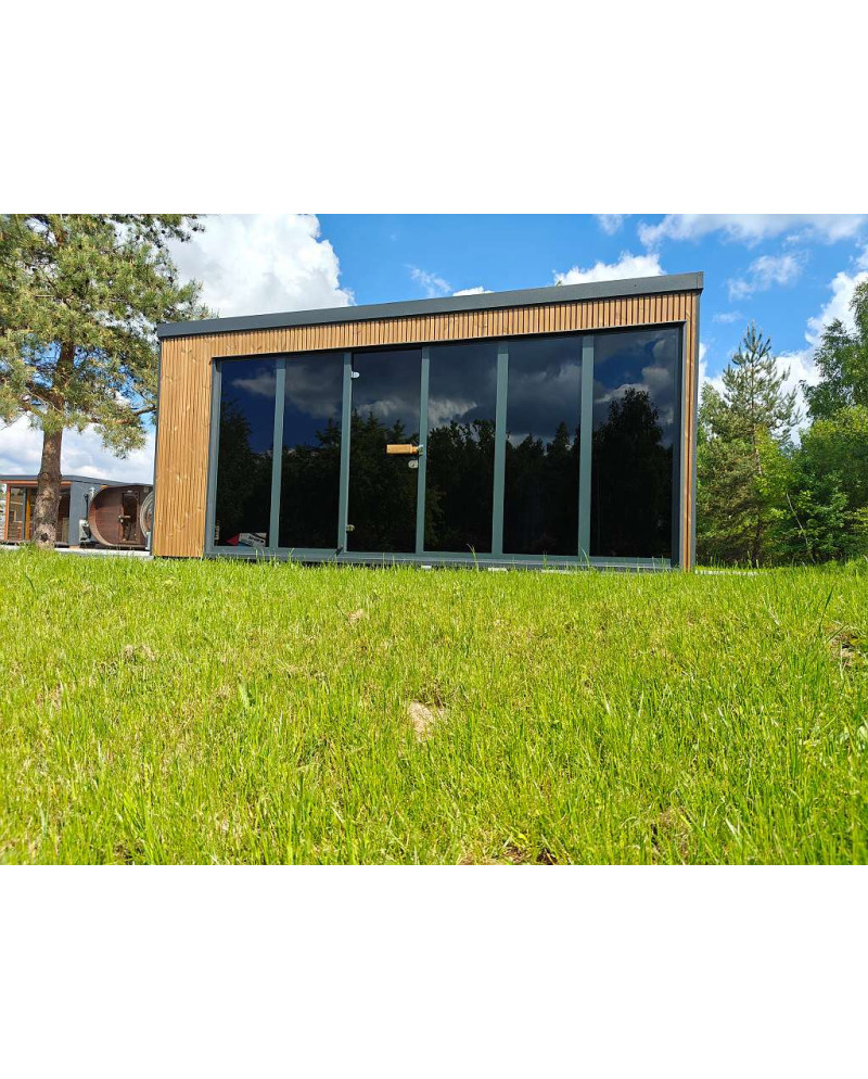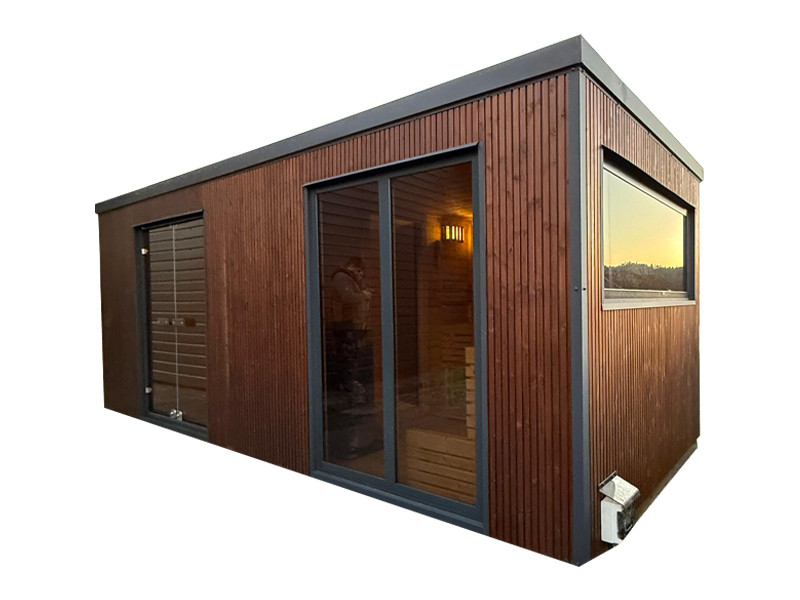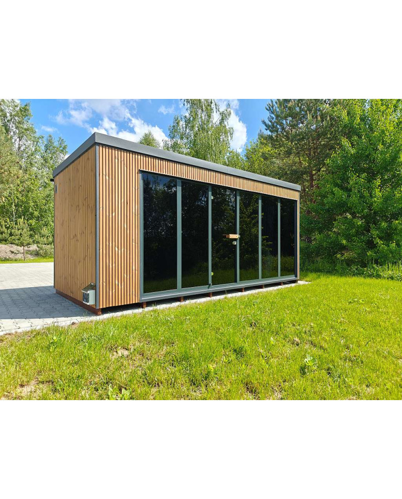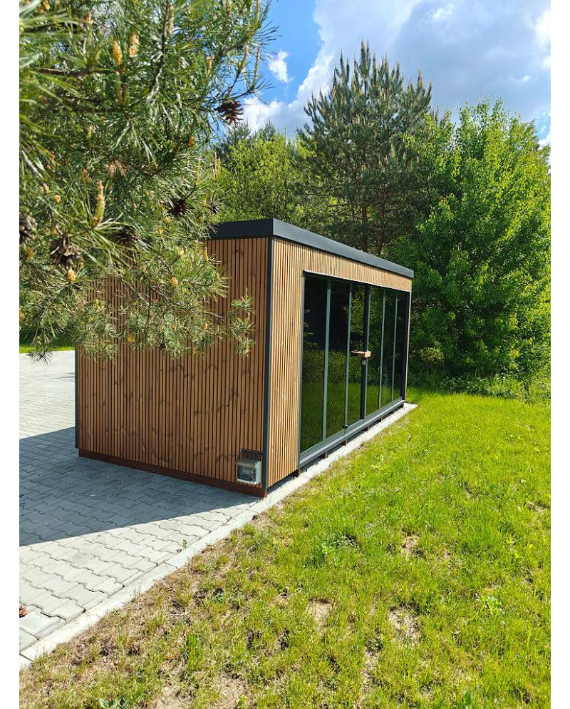 Freistehende Gartensauna Horisont House Lamellia in Standardausführung im Preis enthalten.