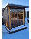 Die Sauna ist vormontiert erhältlich. Die Anlieferung erfolgt bis zur Bordsteinkante. Das Abladen sowie der Weitertransport zum Aufstellort sind vom Kunden selbst zu organisieren und durchzuführen – z. B. mit einem Stapler, Bagger oder Kran. Die Lieferung erfolgt innerhalb von 14 bis 16 Wochen nach Zahlungseingang. Die Transportkosten werden anhand Ihrer Postleitzahl mit 0,60 € netto pro gefahrenem Kilometer berechnet.