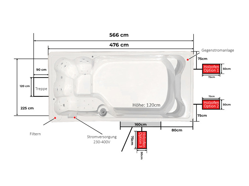 - Preis für den oben genannten Pool in der Standardausführung: 6.599 € zzgl. Lieferung ab 499 € (abhängig von Ihrer PLZ).