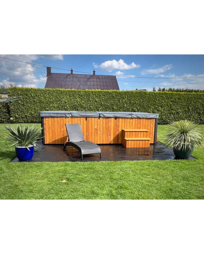 - Seiten Poolverkleidung mit Lärchenholzpaneelen