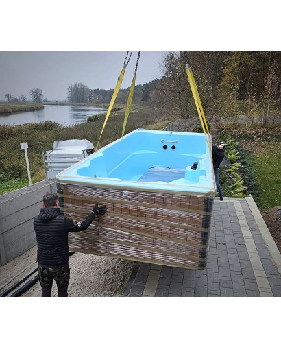 Der Pool ist vormontiert erhältlich. Die Anlieferung erfolgt bis zur Bordsteinkante. Das Abladen sowie der Weitertransport zum Aufstellort sind vom Kunden selbst zu organisieren und durchzuführen z. B. mit einem Stapler, Bagger oder Kran. Die Lieferung erfolgt innerhalb von 6 bis 9 Wochen nach Zahlungseingang. Die Transportkosten werden anhand Ihrer Postleitzahl mit 0,70 € netto pro gefahrenem Kilometer berechnet.