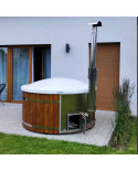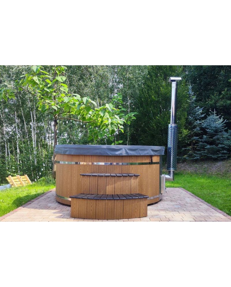Gartenbadefass Hot Tub SPA Bania Rund Ø 225 × H 105 cm mit 20 Massagedüsen, Holzofen & Elektroheizung 3 kW